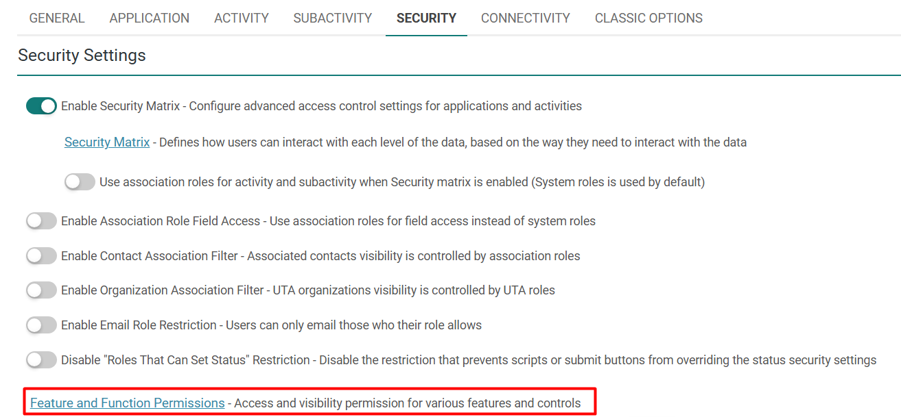 System Administration (gear icon) >> Tracking Applications >> [Edit] *UTAname >> System (tab) >> [Feature and Function Permissions]