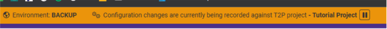 Any changes made while this notification is displayed will be recorded against the selected project. If this message is not visible, changes are not being recorded. Additionally, clicking the pause button to the right of the project name in the banner will suspend change recording: