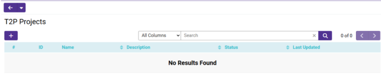 To create a project, click the “T2P Projects” link and select the plus button to add a new project.