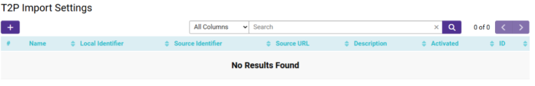 - Click the New T2P Import Setting button (represented by a plus sign).