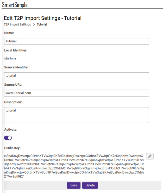- For Public Key, click the edit button (represented by a pencil) and paste the key generated in the export settings of the other environment.