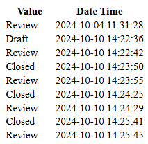 You can utilize the following variable to display the history of status changes within a custom field labeled as Special - Web Page View. This allows you to track and present the sequence of status updates directly within that specific custom field, providing a clear and organized view of all changes made over time. By implementing this variable, you enhance the visibility of status modifications, making it easier to monitor progress and maintain accurate records within your system.